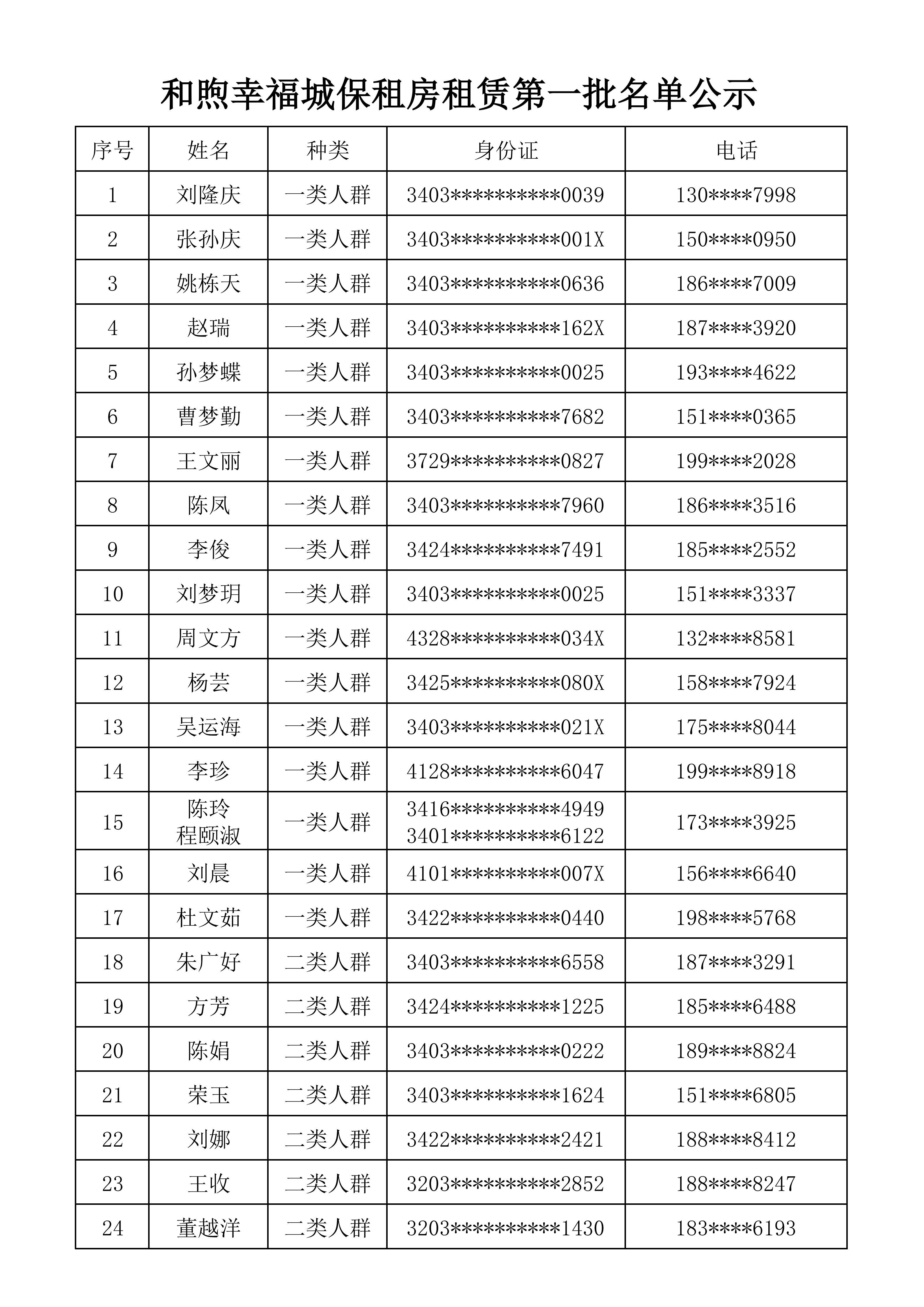 和煦幸福城保租房租賃第一批名單公示